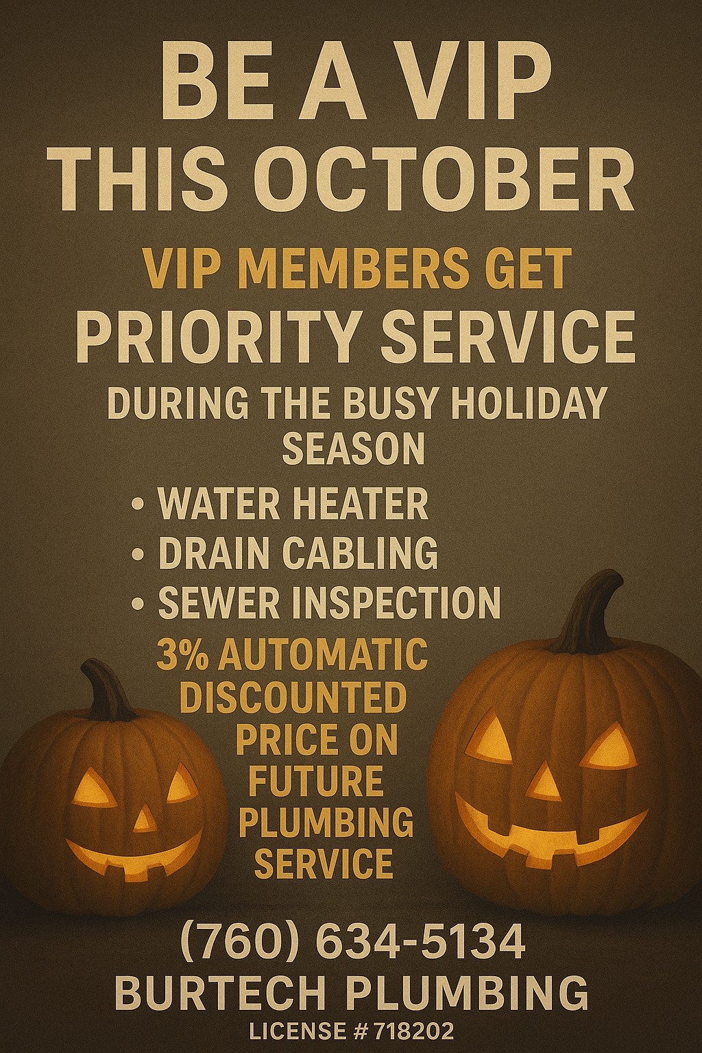 Special Offers! 2025 Plumbing Service Specials! Special event coming soon.... Take advantage of our VIP program. Special offers!
