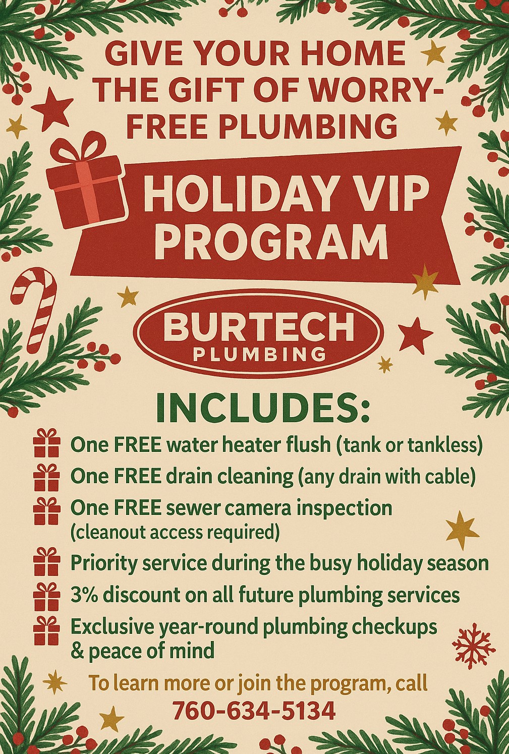 2025 Plumbing Service Specials! Special event coming soon.... Open Market- support local vendors ! December 17th from 3-7pm Holiday Raffle! Take advantage of our VIP program. Special offers!